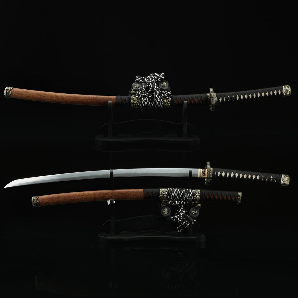 We use high-carbon steel for all our blades. Each sword’s handle features traditional materials like real wood and quality wrapping. The fittings and guards are made from strong steel that’s built to last.